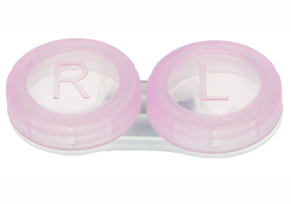 Läätsekonteiner kontaktläätsede hoidmiseks. Värvitoon: roosa.